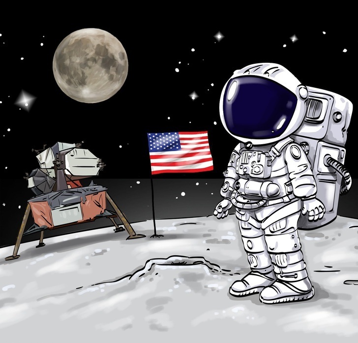1. Астронаутот стои на месечината, така што таа не може да постои во позадината.