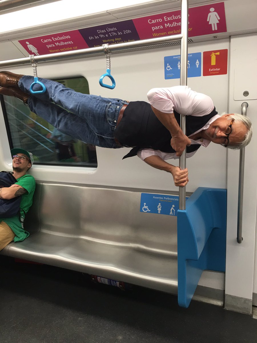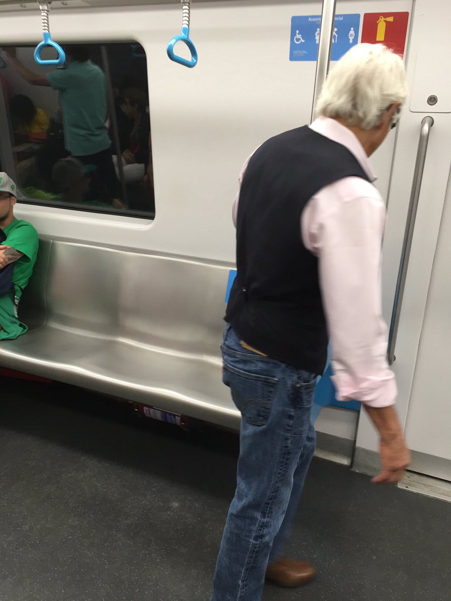 Кога еден патник се понудил да стане и да го отстапи своето место резервирано за постари патници на 68-годишниот дедо, Вејн МекЕнтајр, кој патувал заедно со својот внук во Рио де Жанеиро, тој се насмевнал, ја одбил понудата и потоа го направил ова: