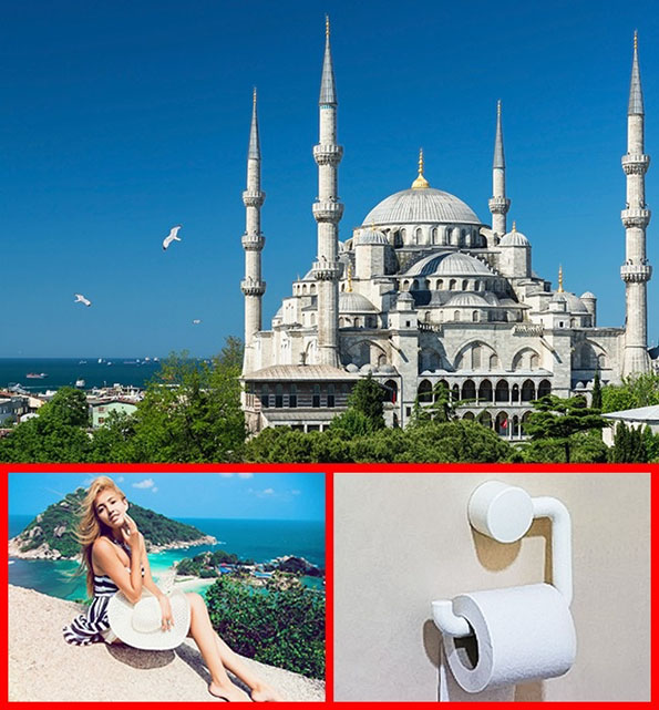 • Во Турција сигурно ќе сретнете традиционални турски тоалети кои наместо тоалетна шолја имаат само дупка во подот. Таму обичај е да се мијат интимните делови со вода, така што можно е да нема тоалетна хартија или да треба да платите дополнително за неа. Носете си марамчиња со себе.