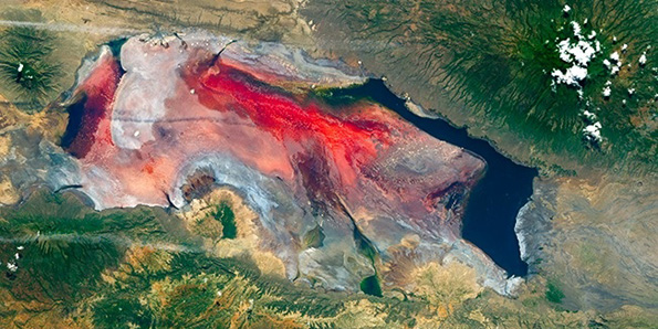 Езерото Натрон е едно од најсолените и најалкалните езера на Земјата покриено со солена кора која понекогаш е црвена. Температурата на водата достигнува 50 степени Целзиусови на одредени места, што го прави речиси непогодно за живот. Само три вида риби живеат тука и тие успеваат да се прилагодат на екстремните услови.