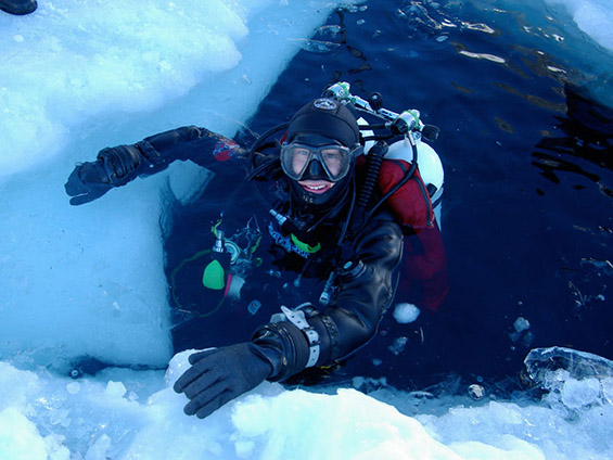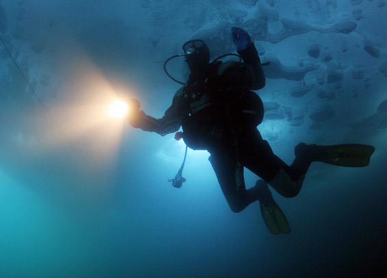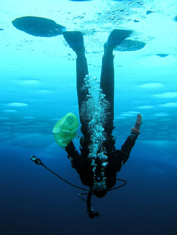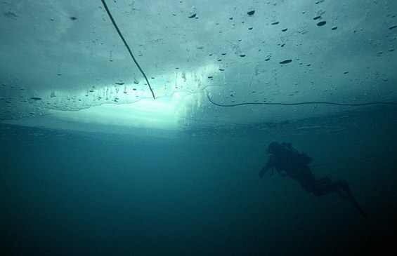 Овој тип на нуркање е специфичен и екстремен заради замрзнатата покривка над главите на нуркачите кои треба да знаат да ја заобиколат за да излезат на воздух. Ова ја прави возбудата поголема, но истовремено и ризикот.