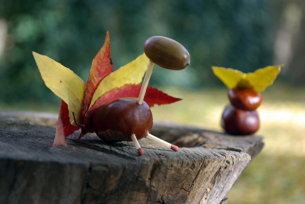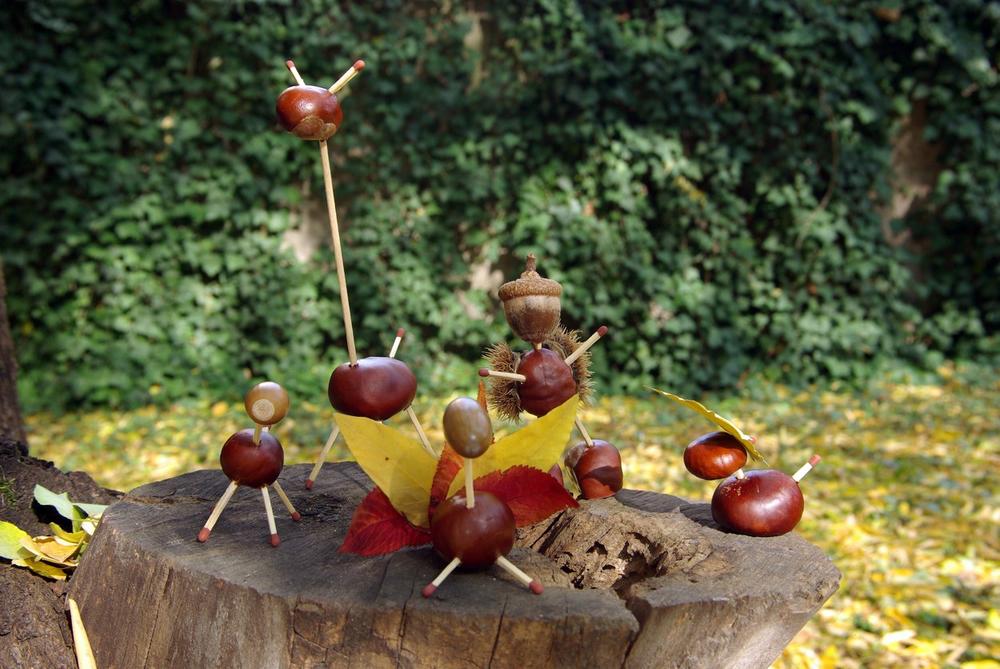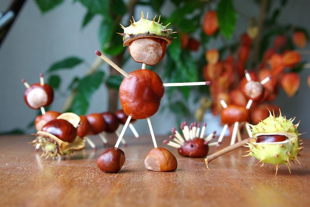 Искористете ги сончевите есенски денови за да соберете костени во природата и да ги научите децата како да прават интересни фигури од нив. Набавете кибрит, лепак, лисја и други природни есенски реквизити, и нема шанси да ви биде здодевно.