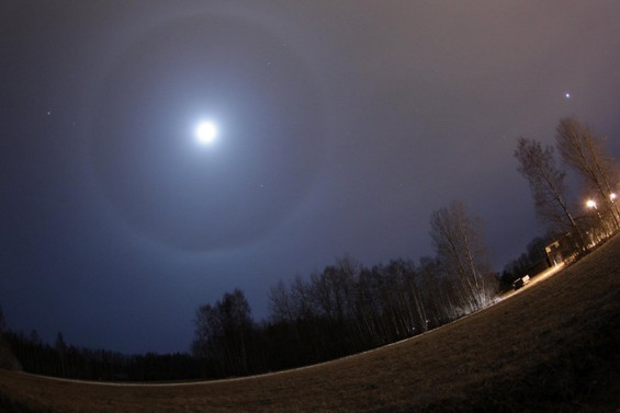 Постојат многу интересни феномени поврзани со боите на месечината од кои најмногу се издвојува феноменот сина месечина. Но, дали некогаш сте забележале огромен прстен од светлина околу неа? Всушност ако го погледнете подобро, може дури и да ви наликува на виножито кое кружи околу месечината. Што е тоа што се случува во атмосферата кое го предизвикува овој несекојдневен ореол на ноќното небо?