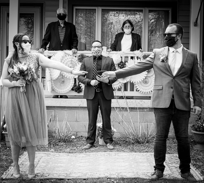 18. Овој пар ја направил свадбата во градината со гости кои гледале од нивните автомобили и онлајн