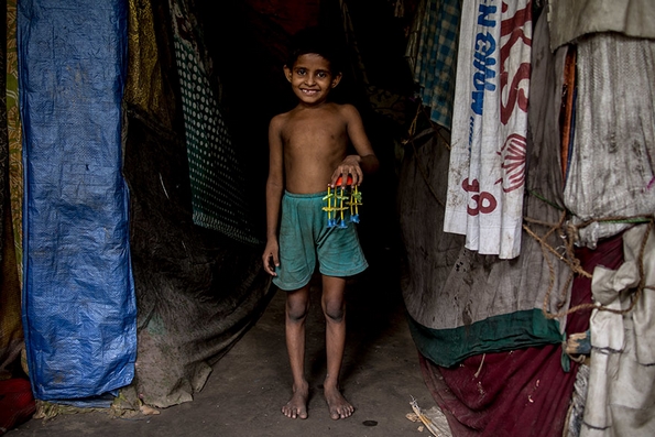 Детето на сликава ја држи во раката својата омилена играчка, а живее со семејство во Индија, во кое возрасните заработуваат по 26 евра месечно