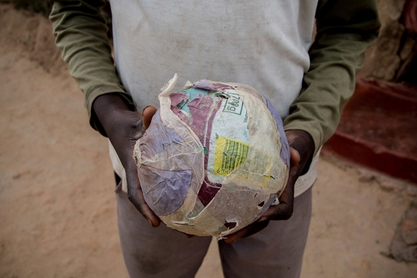Во едно семејство од Зимбабве, кое живее со 29 евра по возрасен, омилената детска играчка е оваа домашно изработена топка