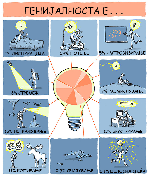 Овој паметен комичен стрип е дело на илустраторот и графички дизајнер Грант Снајдер, кој оригинално го нацртал за сајтот Red Lemon Club. Стрипот ја прикажува генијалноста на човекот, како процес, разделена на 10 поединечни сегменти.