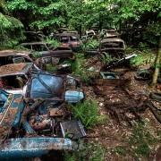 Овие морничави апокалиптични фотографии многу наликуваат како сцена од хорор филм, но тие се направени на едни од најголемите гробишта за автомобили во светот – гробиштата во Шатијон, Белгија. Според една урбана легенда, овие автомобили биле оставени од американски војници за време на Втората светска војна, кои не можеле да ги земат со нив, па решиле да ги скријат во оваа шума во Белгија и подоцна да се вратат по нив. Но, локалните жители велат дека оваа приказна не е точна и дека станува збор за само едно обично место за фрлање на стари автомобили. Без разлика на приказната, погледнете колку морничаво изгледа ова место…