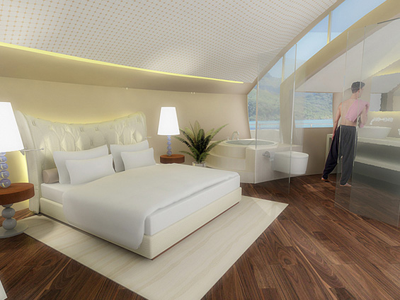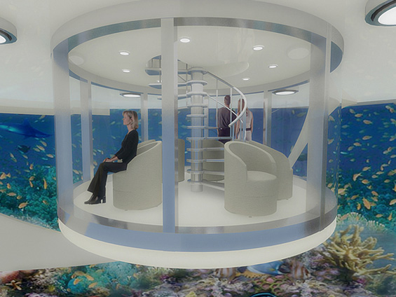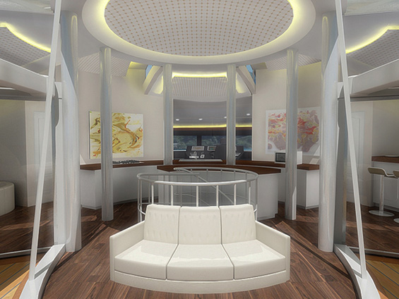 Покрај гламурот којшто го нуди ентериерот, оваа јахта нуди и едно навистина егзотично подводно искуство на морскиот свет, кој можете да го гледате од долниот кружен стаклен дел за набљудување. Внатре во морското возило можете да уживате во убавиот италијански стил и во друштвеното џакузи наменето за 6 души. Инаку дизајнот е изграден за да функционира на соларна енергија и да апсорбира и складира и вештачка и сончева енергија.