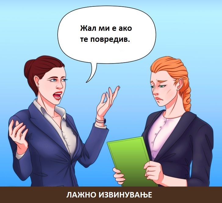 Експертот Ден Нојхарт открива голем број фрази што може да се користат за лажно извинување, а еве неколку од нив: