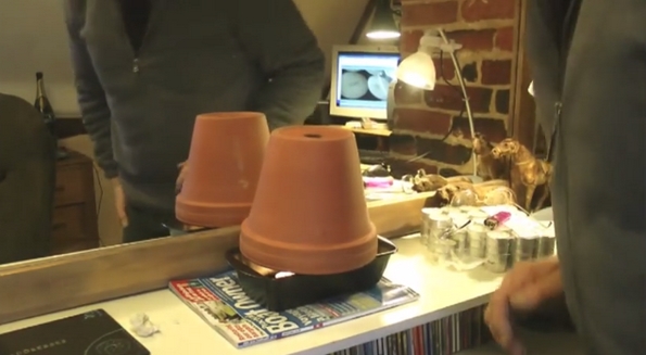 Потребни ви се мали свеќички, кои се многу евтини, мал метален плех, две глинени саксии со различна големина и запалка. Целиот процес функционира така што топлиот воздух се задржува во малата саксија, а потоа се шири низ отворот од големата саксија. Погледнете за што станува збор.