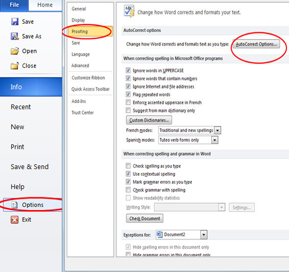 На овој начин можете да направите и одреден збор да се претвора во сосема друг. Идеално за шега, нели? Тоа ќе го сторите доколку одите во File –> Options –> Proofing –> AutoCorrect Options.