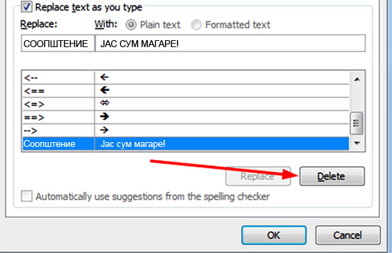 Во нашиот пример, секој пат кога колегата ќе испише „Соопштение“ и ќе стисне SPACE, зборот ќе се претвори во „Јас сум магаре!“. 🙂
