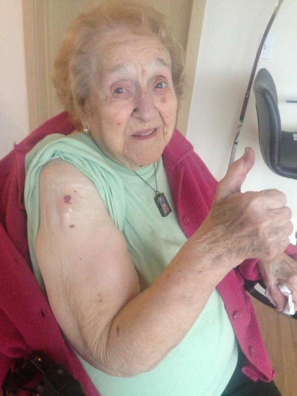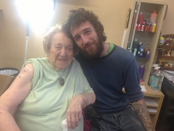 Собирајќи си ја нејзината заработка од казиното, лудава бабичка продолжила со нејзината авантура, одејќи да изеде неколку чинии со храна и на крај завршила на тетовирање. Кога наполнила 100 година ја започнала тетоважата, а сега со помош на тату-артистот Чад Ронило од студиото „Lucky Devil Tattoo“, решила да собере храброст и да ја доврши докрај.