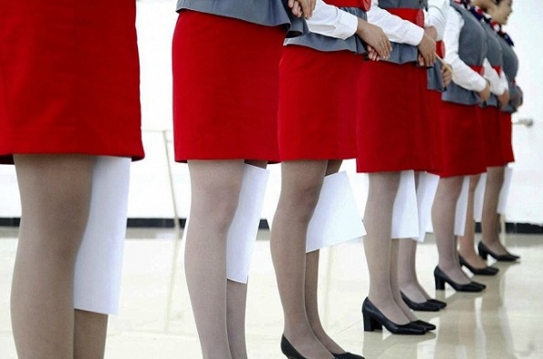 Овие шармантни девојки се студенти на колеџот за цивилно воздухопловство во Ченгду, во провинцијата Сечуан. Стјуардесите што се обучуваат вежбаат правилна насмевка на тој начин што меѓу забите држат стапче за јадење. А за да постигнат правилно држење на телото, ним им ставаат списанија на главите.