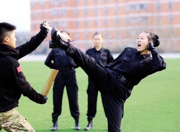 Некои часови за боречки вештини се одржуваат на отворено и повеќе изгледаат како тренирање на војници отколку на нови стјуардеси.
