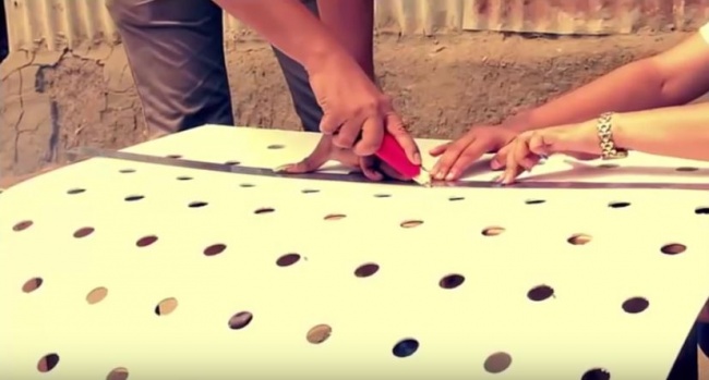 И вие самите можете многу лесно и едноставно да го направите овој „клима уред“. Најпрво треба да исечете неколку дупчиња во големо парче дебел картон. Дупките треба да бидат доволно широки за низ нив да може да се протне врвот на обично пластично шише. Следниот чекор е да ги исечете шишињата на половина со помош на ножици. Откако ќе го сторите тоа, додадете ја половината од шишето која го содржи врвот во картонот. Поставете го картонот на прозорец, со шишињата насочени кон надвор и прицврстете го добро.