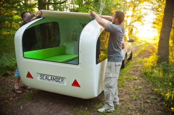 Тоа е возможно со приколката „SeaLander“ која не само што можете да ја закачите на вашиот автомобил и да тргнете на патување во природа, туку со неа можете и да пловите. Моторот овозможува полнење на батериите на приколката, со што во текот на ноќта би имале електрична енергија.
