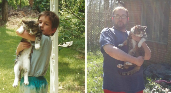 Во последно време се појавија многу фотографии во кои ликовите се обидуваа да направат средба со своето детство преку обновување на сцените од тој период. Овој пат ви претставуваме уште такви, во стилот „некогаш и сега“, но овие покажуваат како децата и нивните миленици растат заедно низ годините. Овие луѓе ги добиле своите другарчиња од животинскиот свет уште кога биле мали, но и ден денес живеат со нив. Една до друга се ставени сликите направени пред повеќе од десет години и денес, а на нив се гледа како дечињата кои некогаш биле среќни поради добивањето на милениче, денес се радуваат на тоа што сè уште можат да се дружат со нив.
