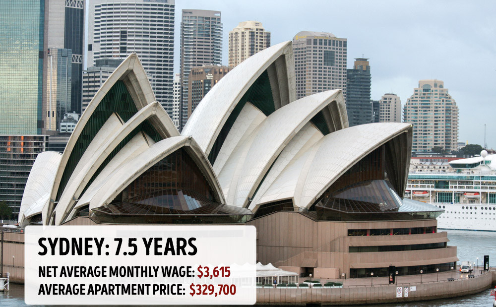 Сиднеј: 7,5 години. Просечна месечна плата: 3.615 долари. Просечна вредност на стан: 329.700 долари.