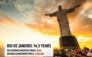 Рио де Жанеиро: 14,5 години. Просечна месечна плата: 644 години. Просечна вредност на стан: 105.950 долари.