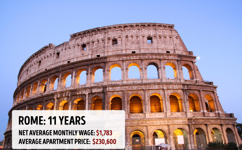 Рим: 11 години. Просечна месечна плата: 1.783 долари. Просечна вредност на стан: 230.600 долари.