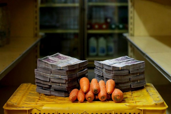 Венецуела се наоѓа во ваква положба и ова е најлошиот случај на хиперинфлација по оној во Зимбабве во 2007-2009 година. Се очекува до крајот на годината инфлацијата да порасне за 1 милион проценти. Власта се обидува да се справи со ова со „кратење“ 5 нули од националната валута, боливар, и да печати нови банкноти. Одреден период ќе има микс од банкнотите во циркулација, а ова ќе предизвикува збунетост за вистинската цена на продуктите. Ова ќе биде вистински хорор, особено за сиромашните кои немаат сметка во банка. Овие луѓе се присилени да носат голема количина кеш за да ги купат и најосновните продукти.