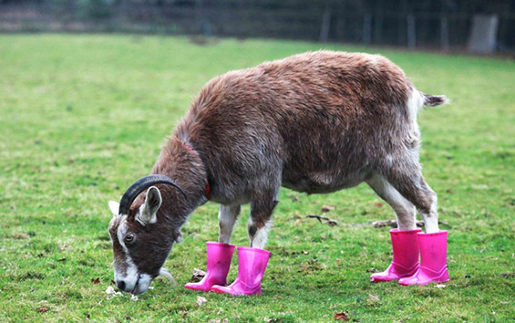 Сигурно помисливте дека станува збор за некоја шега, но веднаш да ви кажеме дека не сте во право. Оваа коза боледува од артритис, а студеното и влажно време ѝ ја влошува состојбата. 12-годишната Мејзи е згрижена во засолништето за животни „Maria’s Animal Shelter“ во Корнвол, Велика Британија, од каде за да ѝ го олеснат движењето, одлучиле да ѝ набават розови чизмички.