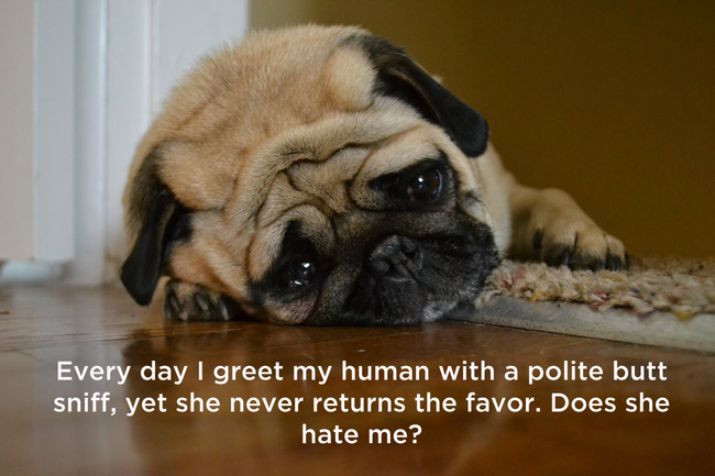 Секој ден го поздравувам мојот сопственик со душкање на задникот, но тој не ми враќа. Да не ме мрази?