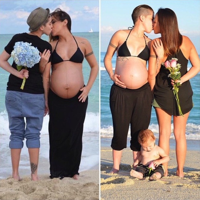 Мелани ја споделила на Инстаграм фотографијата од бременоста на нејзината сопруга во јануари, 2014 година, поставувајќи ја до скоро идентична фотографија од нејзината лична бременост од јануари, 2015 година. Сега двете фотографии вирално се шират на интернет.