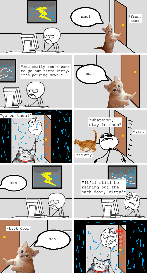 Пушти ме надвооор! Пуштиии мееее… Хииии, не, затвори врата! Отвори ја другата.