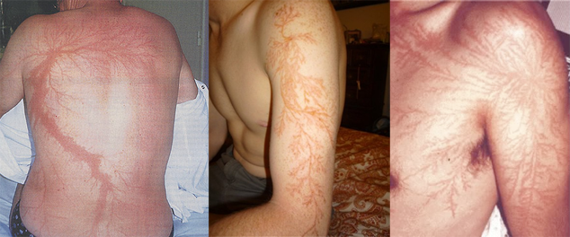 Овие линии се појавуваат на површината на изолирачки материјали. Ако човек биде удрен од гром, се појавуваат кај него и се трајни.