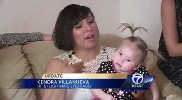Кендра била бремена со нејзината ќерка Кимберли Гордон кога била удрена од гром. Веднаш била однесена во болница и била породена со царски рез. Девојчето било родено 2 недели порано. Иако преживеале и мајката и детето, останале неколку несакани ефекти од громот. Косата на Кимберли постојано расте нагоре, дури и цела година по ударот од громот. Покрај тоа девојчето развило невролошки проблем и не може да станува сама и има проблеми со варењето.