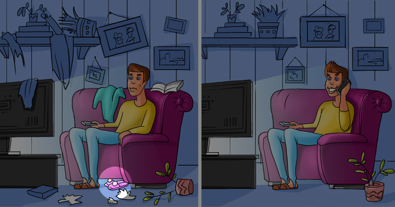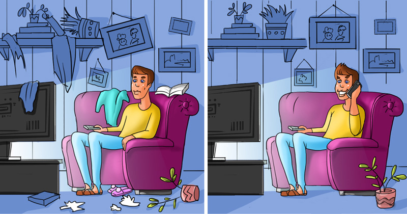 На сликата гледаме двајца момци во нивниот дом. Погледнете ја внимателно секоја слика за да откриете кој од нив има девојка.