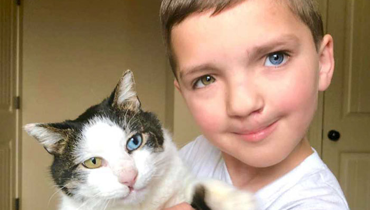 Малтретирано 7-годишно момче со различни очи и зајачка уста наоѓа мачка која е иста како него!