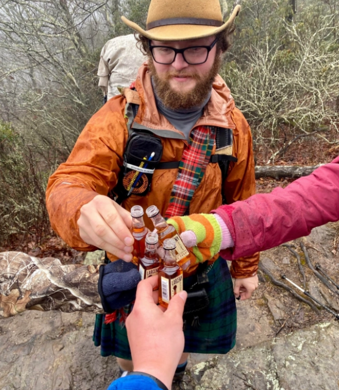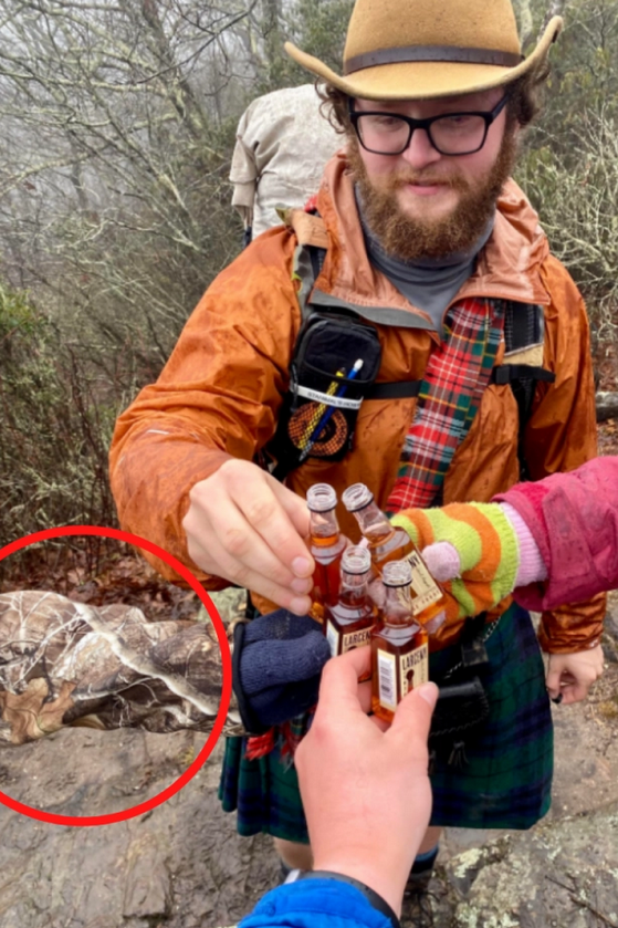 На фотографијата можете да забележите четири мали шишиња со виски и како тројца пријатели наздравуваат. Има уште една личност, но дали можете да ја забележите? Оваа фотографија стана многу популарна на социјалните мрежи, а четвртата личност на прв поглед не ја гледаме, бидејќи ракавот се камуфлира со сцената.