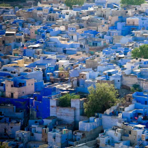 Овој град е познат и како „Синиот град“, поради сините куќи кои можат да се забележат оддалеку. Се верува дека куќите се фарбани сино како резултат на класниот систем во Индија. Друго верување е дека жителите на овој град, побожните Брахмини, ги обоиле нивните домови во сино за да се разликуваат од останатата популација.