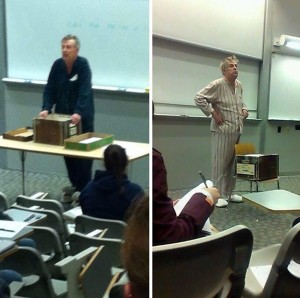 Професори во пижами протестираат за закажаните завршни тестови во 7 часот наутро