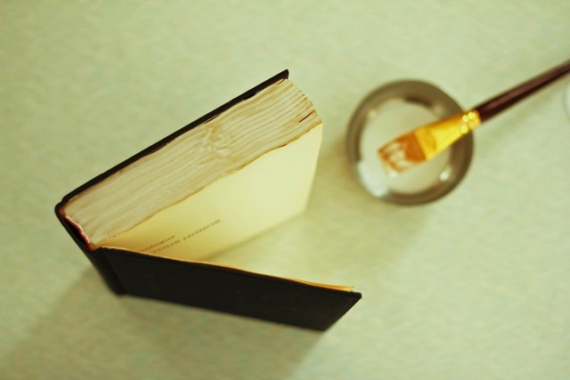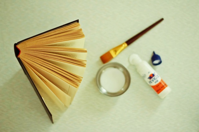 Чекор 1: Страниците од книгата премачкајте ги со лепилото за хартија и оставете ги да се исушат.