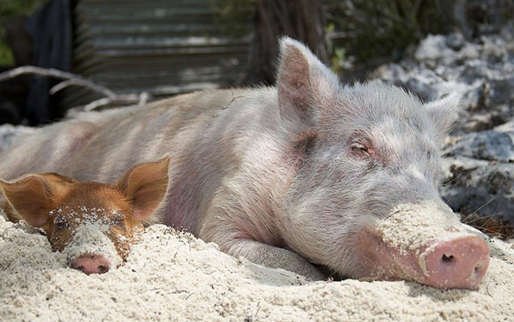 Свињчињата се толку успешни и борбени за својот опстанок, што денес тие совршено си го живеат животот на тропски остров и имаат фамилии од по 8 дечиња. Нивниот живот се состои само од јадење, спиење и пливање. Човек да посака да стане свиња, само за да го искуси овој рајски живот!