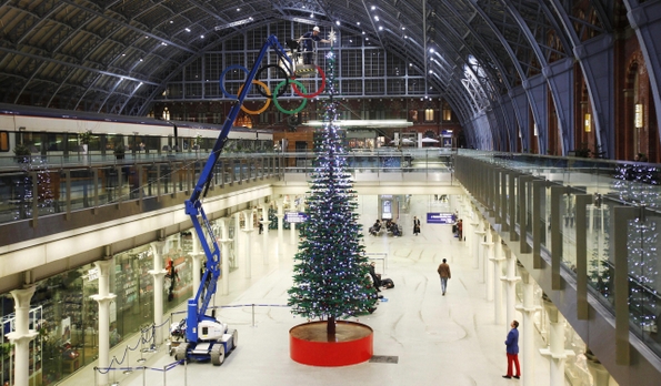 Оваа интересна елка е поставена на познатата железничка станица Свети Панкрас во Лондон. Кога ќе помислите да се пожалите што ќе мора да ги спакувате сите украси од вашата елка на крајот на сезоната, само помислете како им е на оние кои ја склопувале, а треба и да ја расклопат оваа елка.