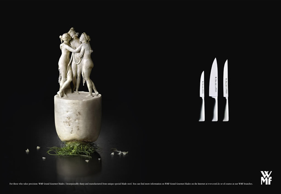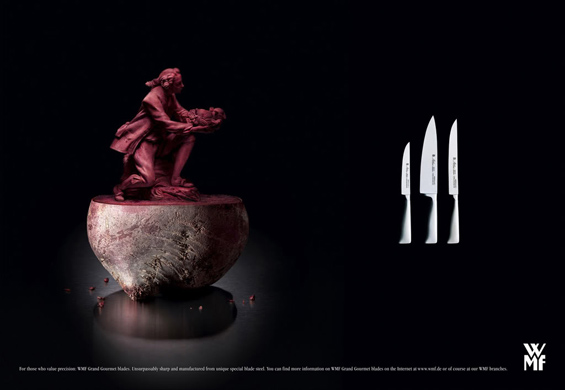 Германската компанија „WMF“ која се занимава со производство и продажба на ножеви и друг кујнски прибор, на многу оригинален начин успева да ги промовира своите производи. Тие претставуваат што сè можете да направите со нивните ножеви бидејќи се многу остри. Нивните ножеви се многу почитувани помеѓу светските готвачи.