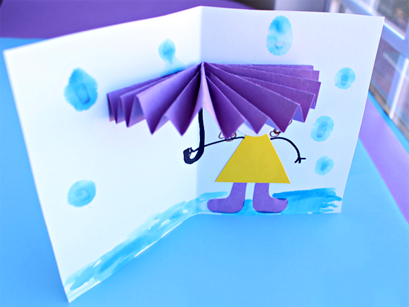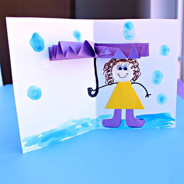 За уште поинтересна честитка, на ликот кој го држи чадорот, може да му залепите пластични очи.