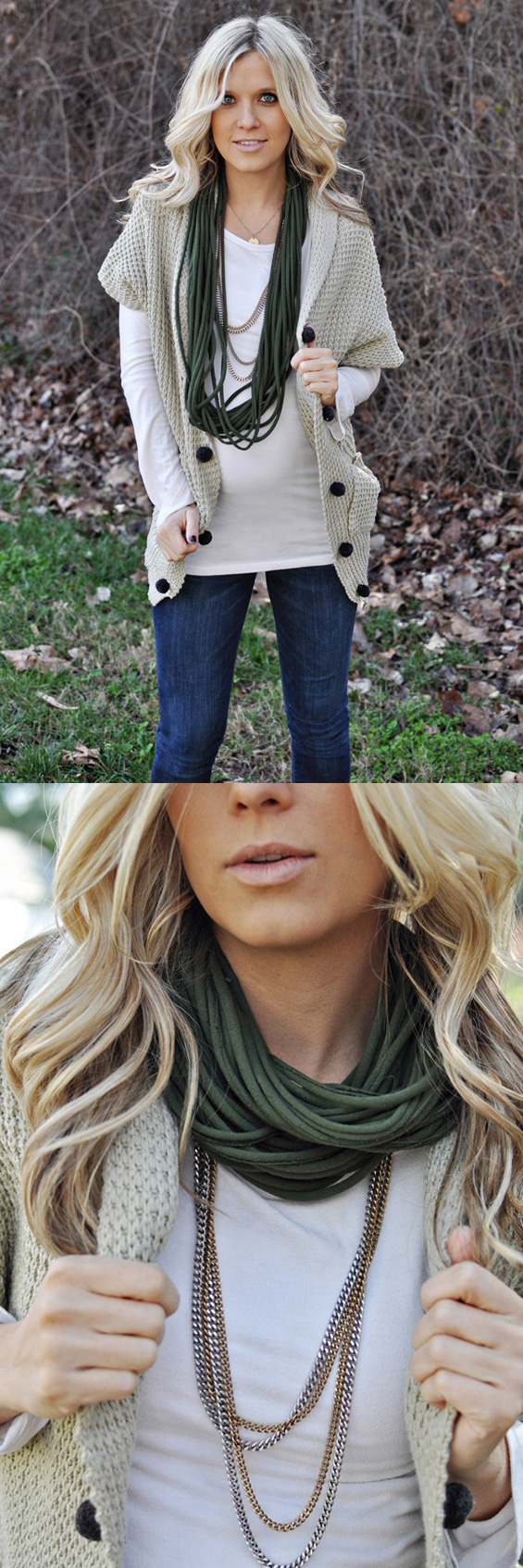 Оставете го слободно да виси околу вашиот врат или превиткајте го во уште еден круг, за да добиете „ефект на раслојување“.