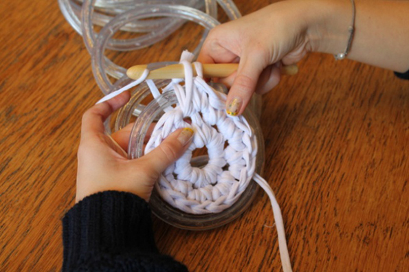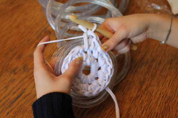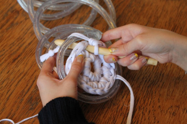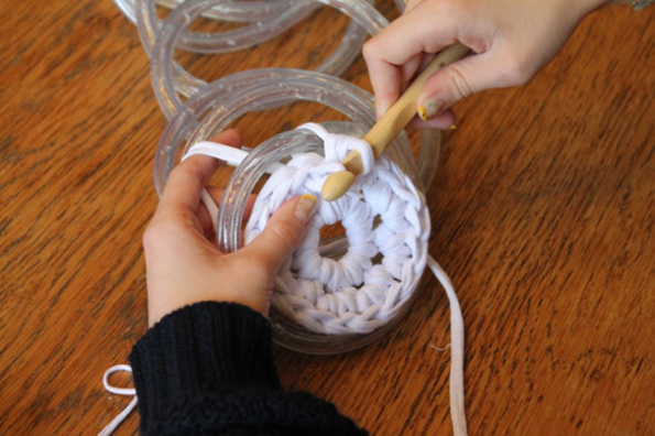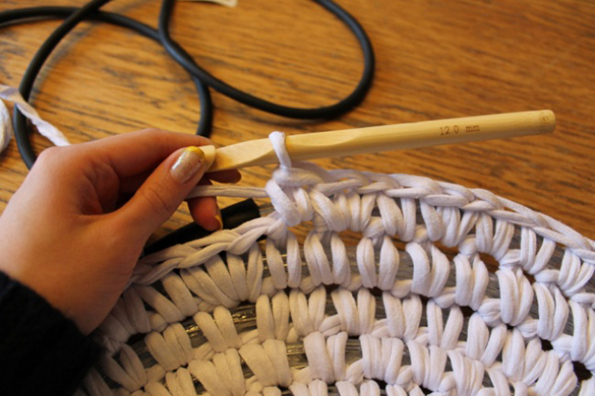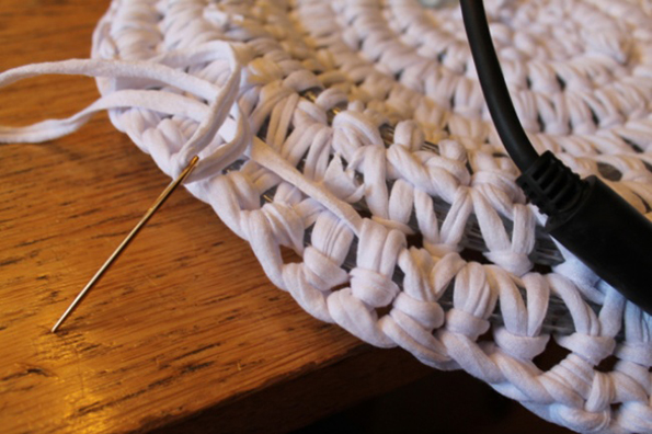Кога ќе стигнете до крајот, продолжете уште малку со плетењето без кабелот, со цел да направите убав круг и вплетете го крајот