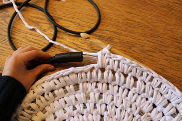 Имајте на ум дека големината на вашиот иден тепих зависи од должината на кабелот, па за да добиете идеја колкави ќе бидат пропорциите, свиткајте го во спирала пред да почнете со работа