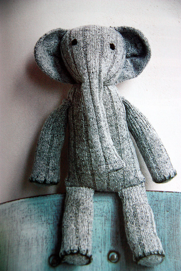 Со подебел конец зашијте ги телото, рацете и опашката оставајќи 5 мм простор од отворот за главата. Рабовите на отворот навлечете ги навнатре и сега зашијте го (со тоа го затворате).
