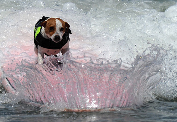 На натпреварот во сурфање на бранови, во кој учесници се кучиња-сурфери, а се одржува по шести пат во заливот на одморалиштето Луис Коронадо, присуствувале стотици локални граѓани од САД. Повеќе од педесет кучиња со различни големини и раси, се собрале по должината на брегот на калифорниската плажа Империјал на 5 јуни 2011 за да бидат дел од едно натпреварувачко јавање на бранови.