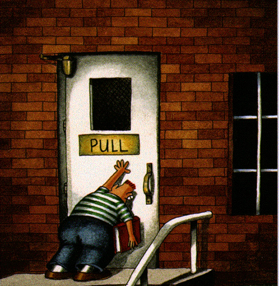 Некој некаде турка врата на која пишува влечи.