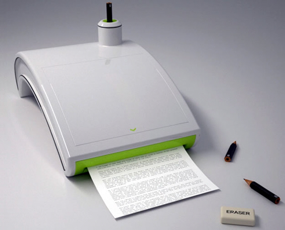 Особено интересен изум е принтерот кој користи молив наместо тонер. Вметнувате истрошени моливи и на тој начин го „храните“ принтерот со графит, кој му е потребен за печатење. Постои и опција за бришење, па така хартијата може да се користи неколку пати. Принтерот е дело на Хојонг Ли.